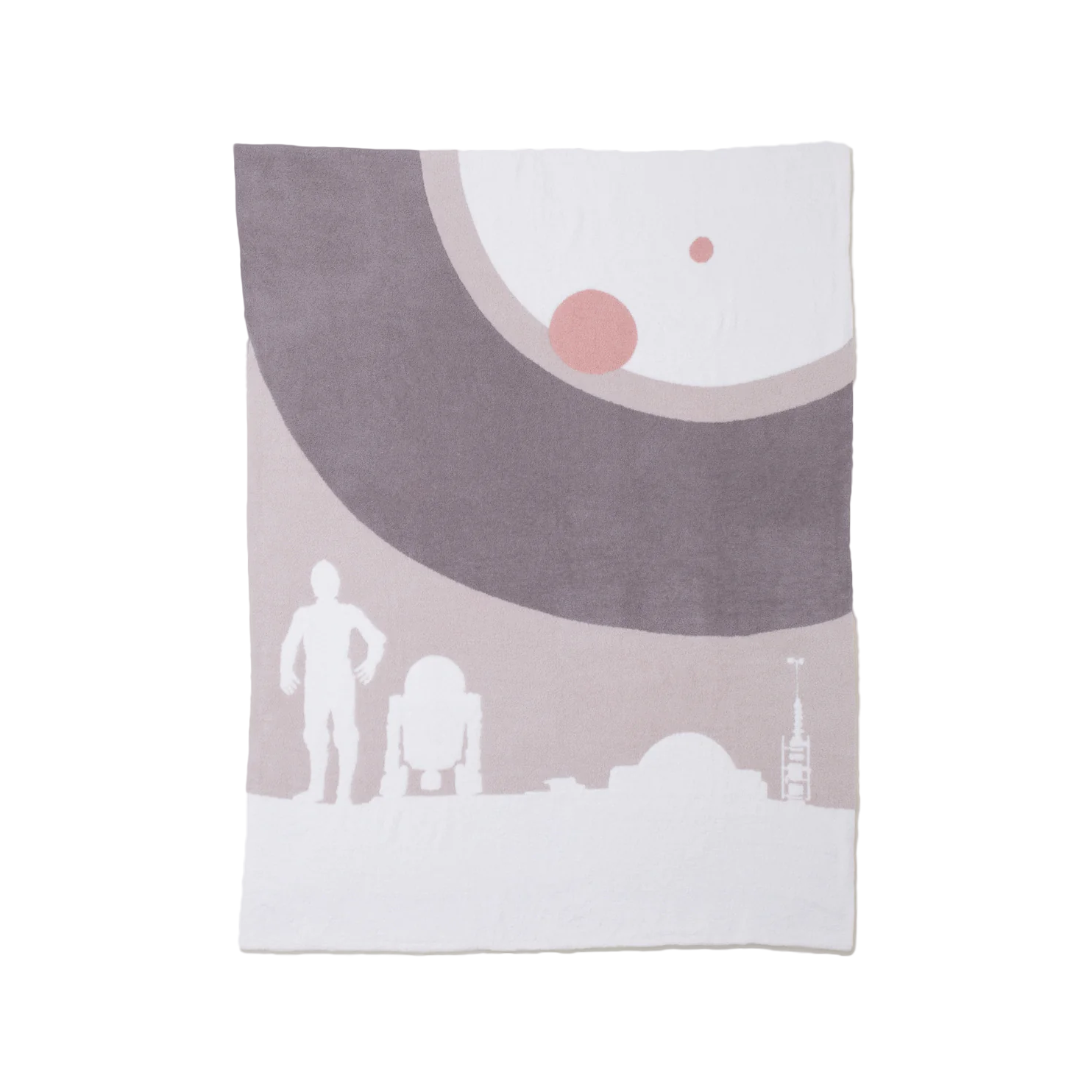The nostalgic landscape on this ultra-plush throw depicts the warm desert sands of Tatooine from Star Wars Episode IV: A New Hope. This moment captures C-3PO and R2-D2 gazing out at the iconic binary sunset. Packaged and tied with a custom Star Wars ribbon, this item is perfect for gifting in any galaxy.