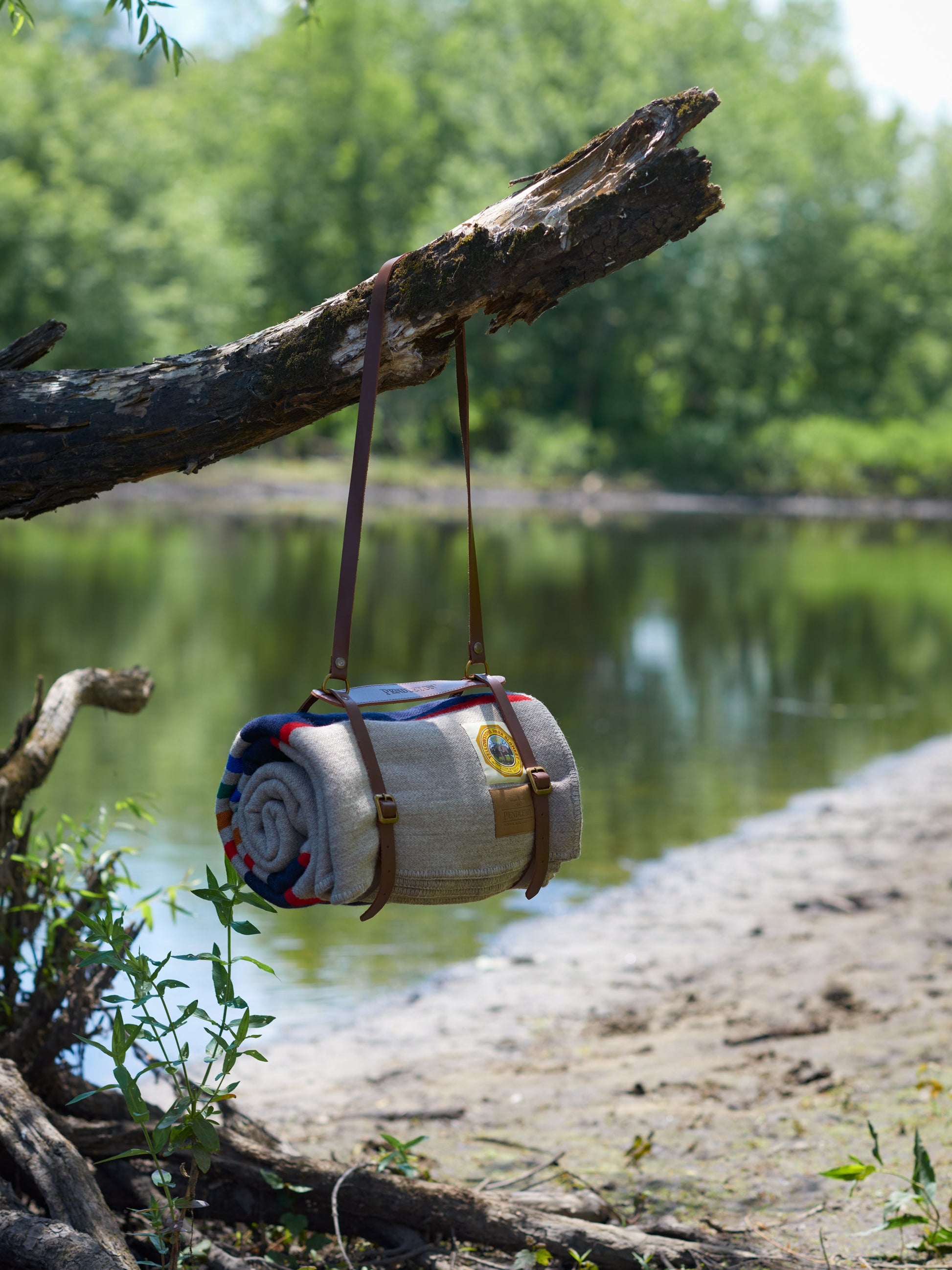 This heirloom quality national parks commemorative throw with an easy over the shoulder leather carrier celebrates America's first national park, Yellowstone. Roll it out and watch Old Faithful, or spread it and rest while taking in the wildlife around Hayden Valley.
