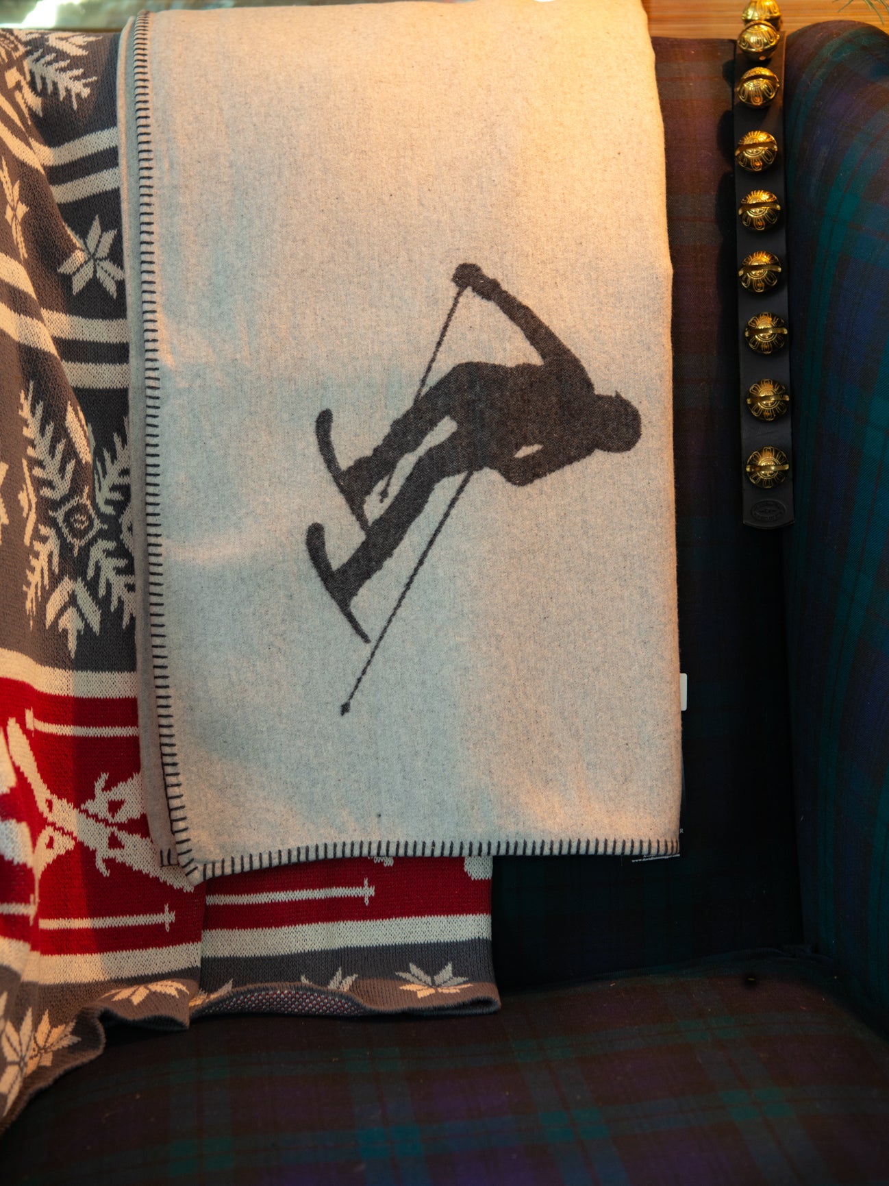 This reversible two toned grey and charcoal downhill skier throw with whipped stitched border showcases a modern design aesthetic. Made in Austria by a company, who for over 150 years has designed home textiles.