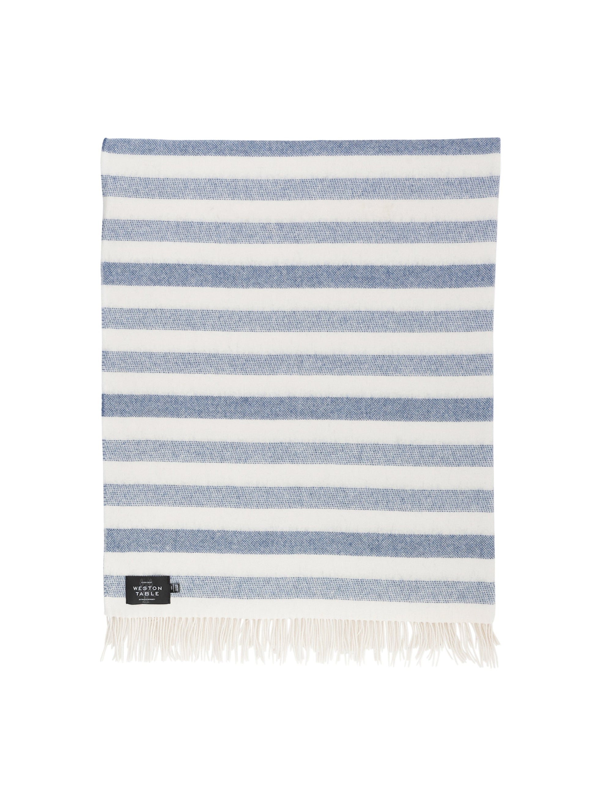 This heirloom quality 100% lambswool ocean blue striped throw is a perfect hang over a chair indoors or out blanket for when the breezes make another layer necessary.