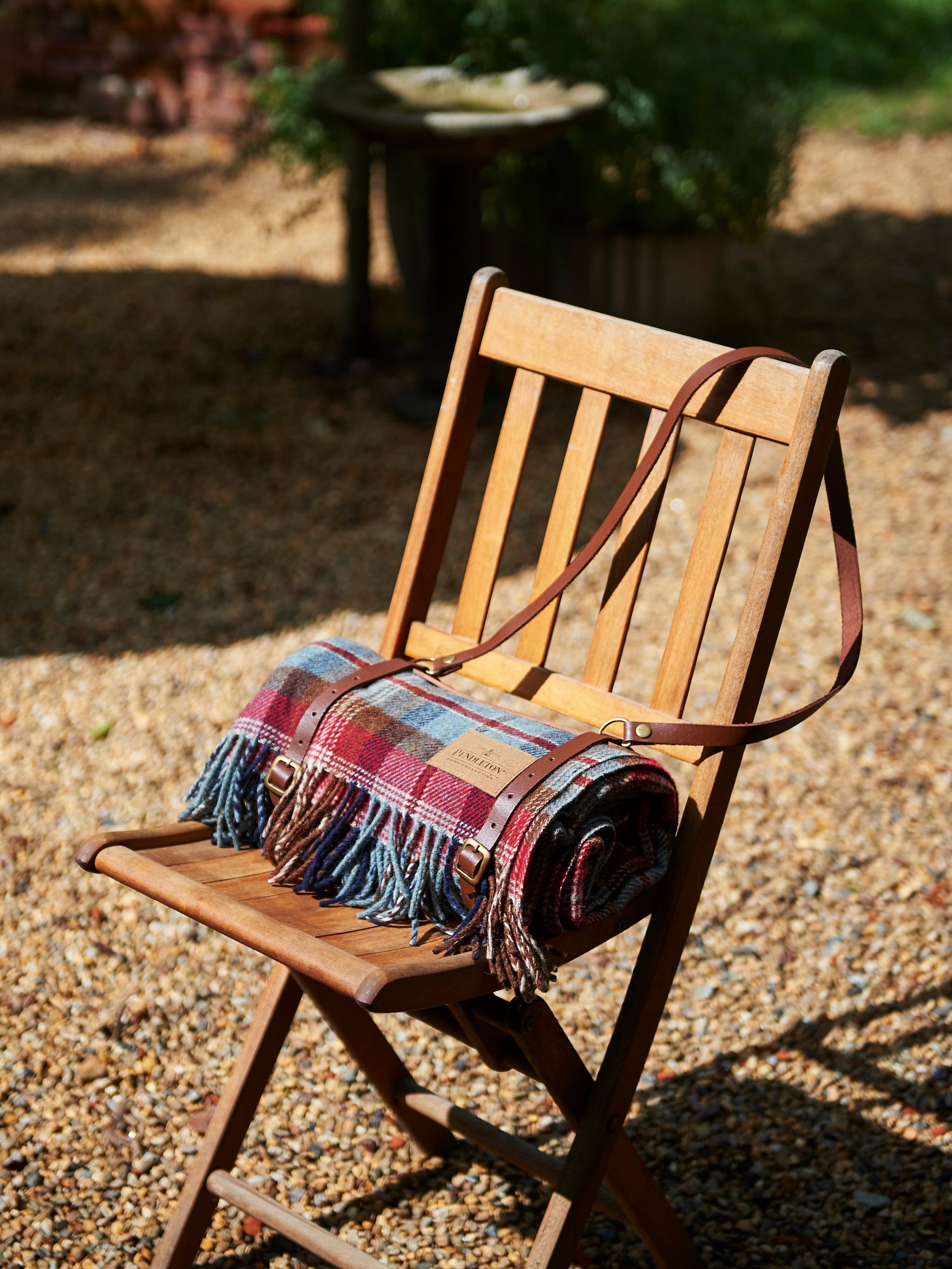 An iconic Pendleton leather strapped pure virgin wool throw is a nostalgic nod to those who traveled by horse-drawn carriage, train or boat back in the day.