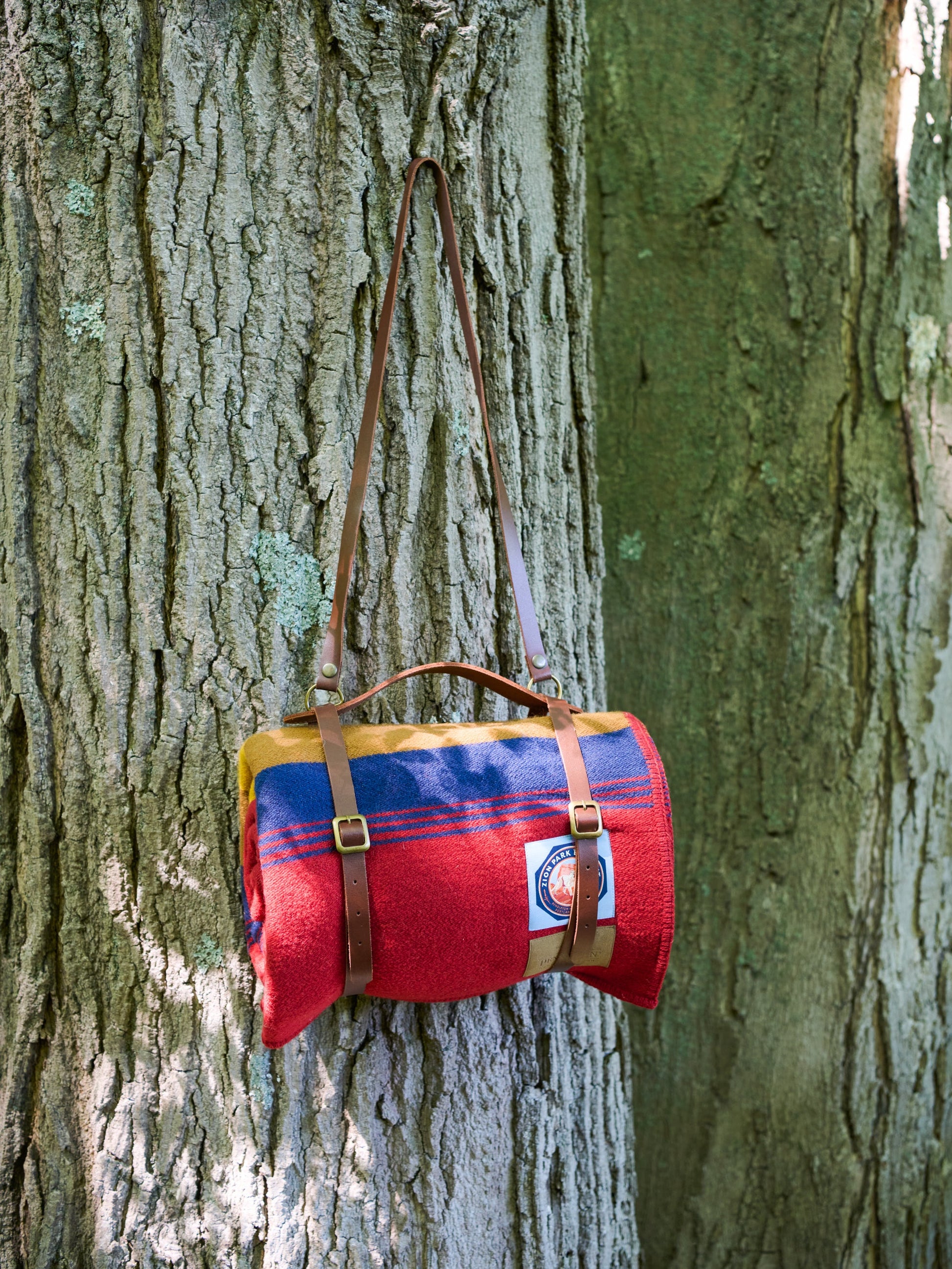 This wool leather strapped American made blanket celebrates Zion National Park, the home in south western Utah of the California Condor, the largest flying bird in North America with and impressive wingspan of 10 feet from tip to tip.
