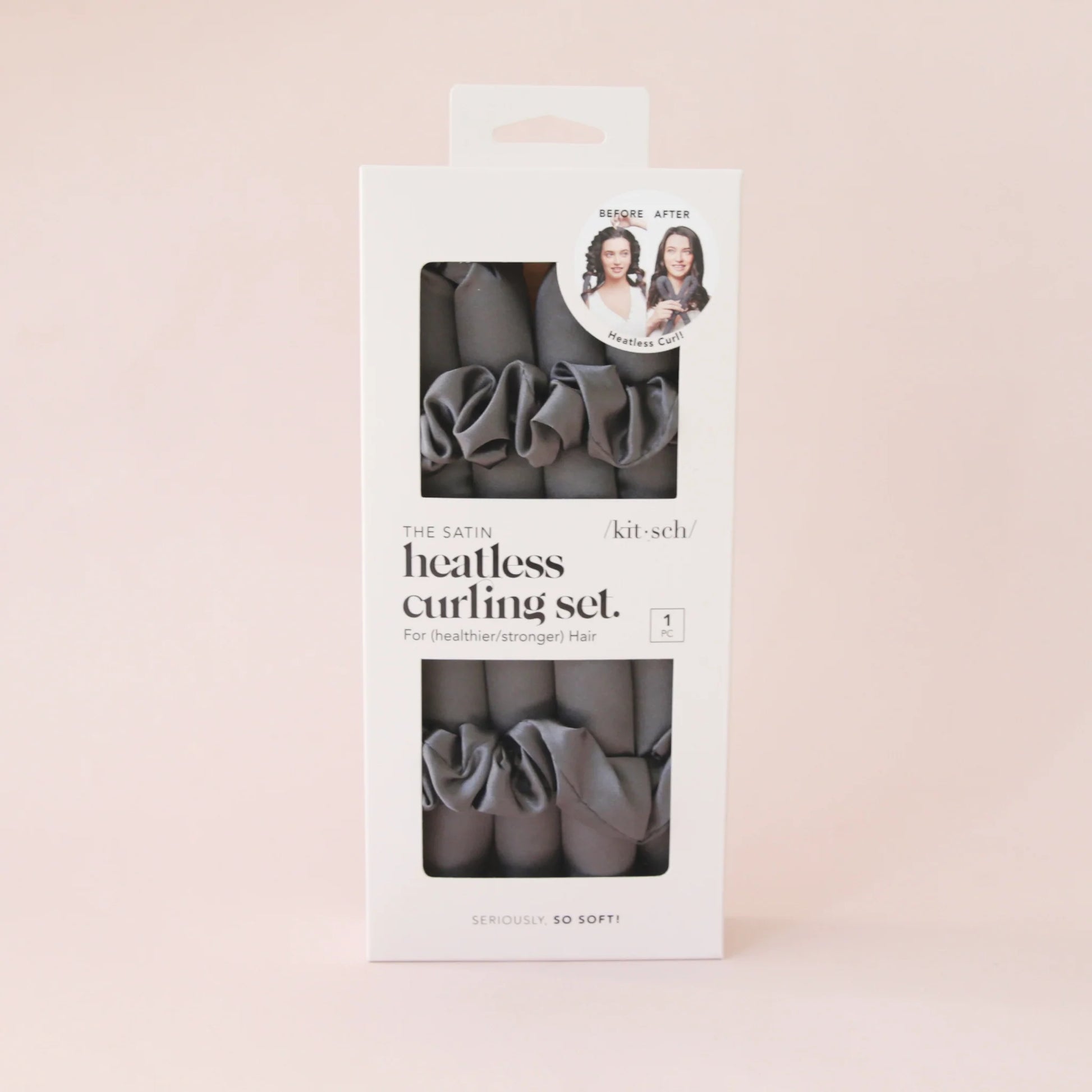 Kitsch Satin Heatless Curling Set in black allows you to create the perfect waves or curls for a beautiful style - without the heat damage! The satin construction keeps your hair frizz-free and prevents breakage. Simple to use and can be worn day or night!